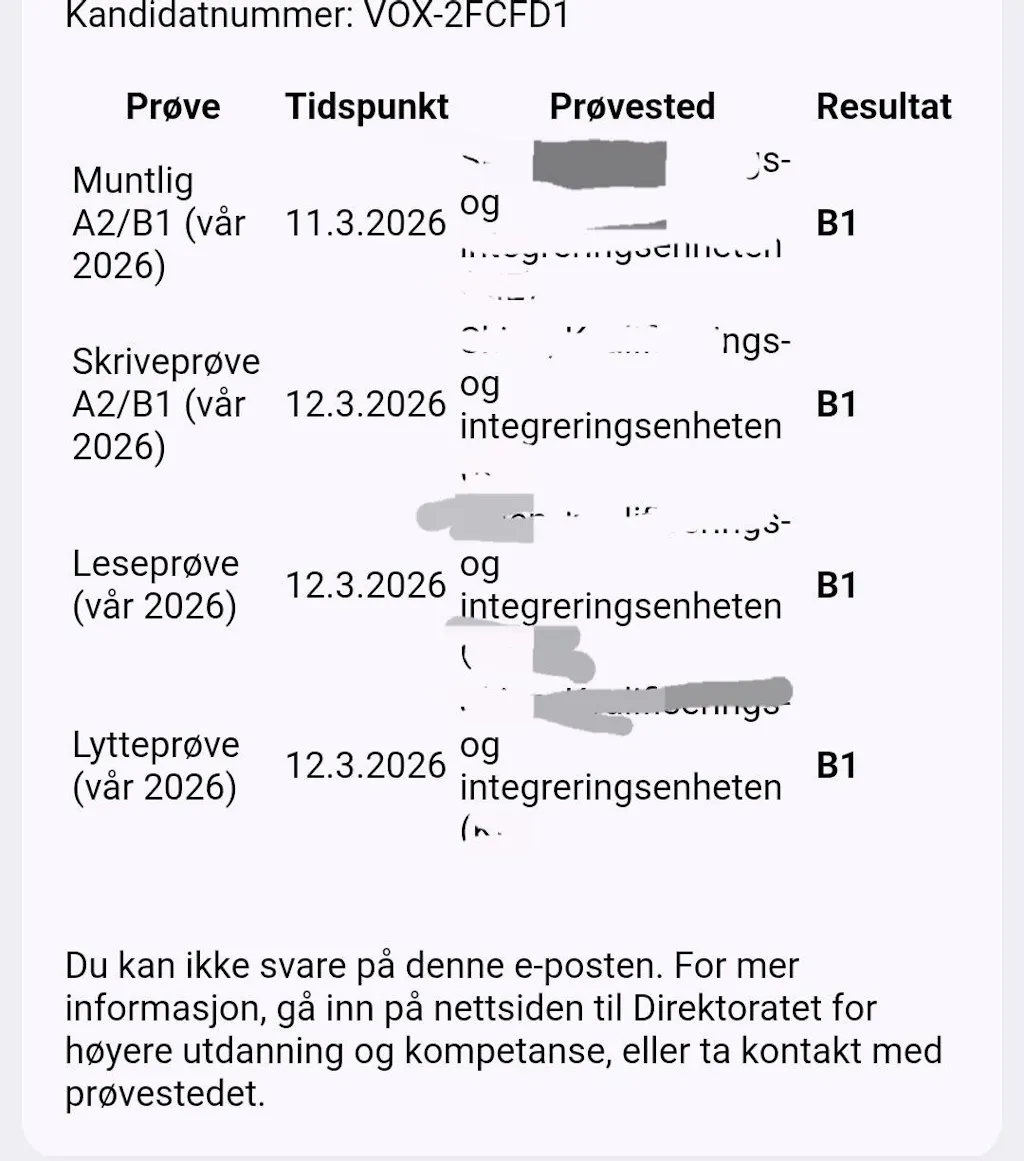 - готується до norskprøve (іспиту) на рівень А2-В1